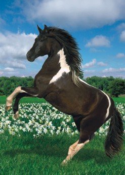 Krása a ušlechtilost vzhledu a pohybu koně inspirovala člověka již od doby kamenné. Také puzzle Kůň na zadních nám ukazuje jeho vyjímečnou eleganci. Parádní motiv koně z profilu, jak panáčkuje na zadních, je skvělý obrázek, který ukazuje jaké skvostné a majestátní je to zvíře. V pohybu vždy nejvíce vyniká jeho krása.