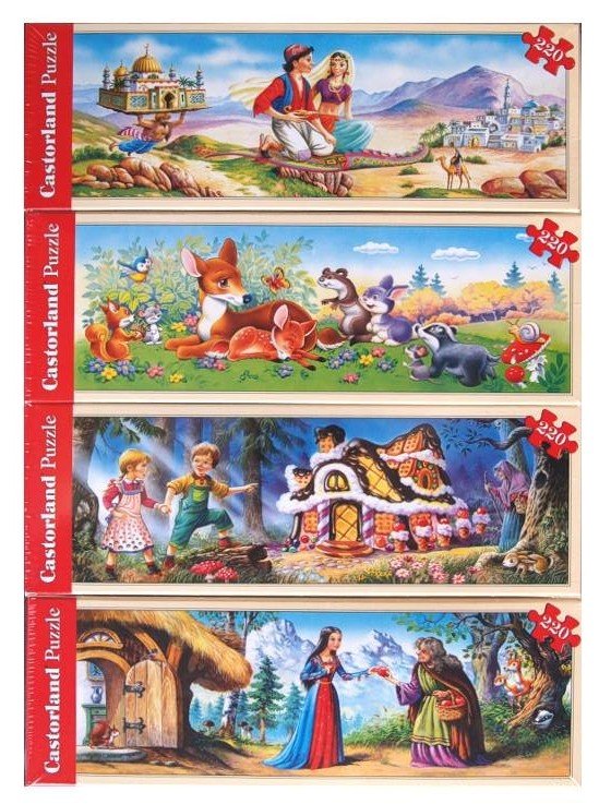 Čtyři motivy z nejznámějších a oblíbených pohádek si složíte se svými dětmi na jednom puzzle Pohádky. Tato krásná koláž vytvoří výsledný pohádkový obrázek, jenž ozdobí nejeden dětský pokojíček.